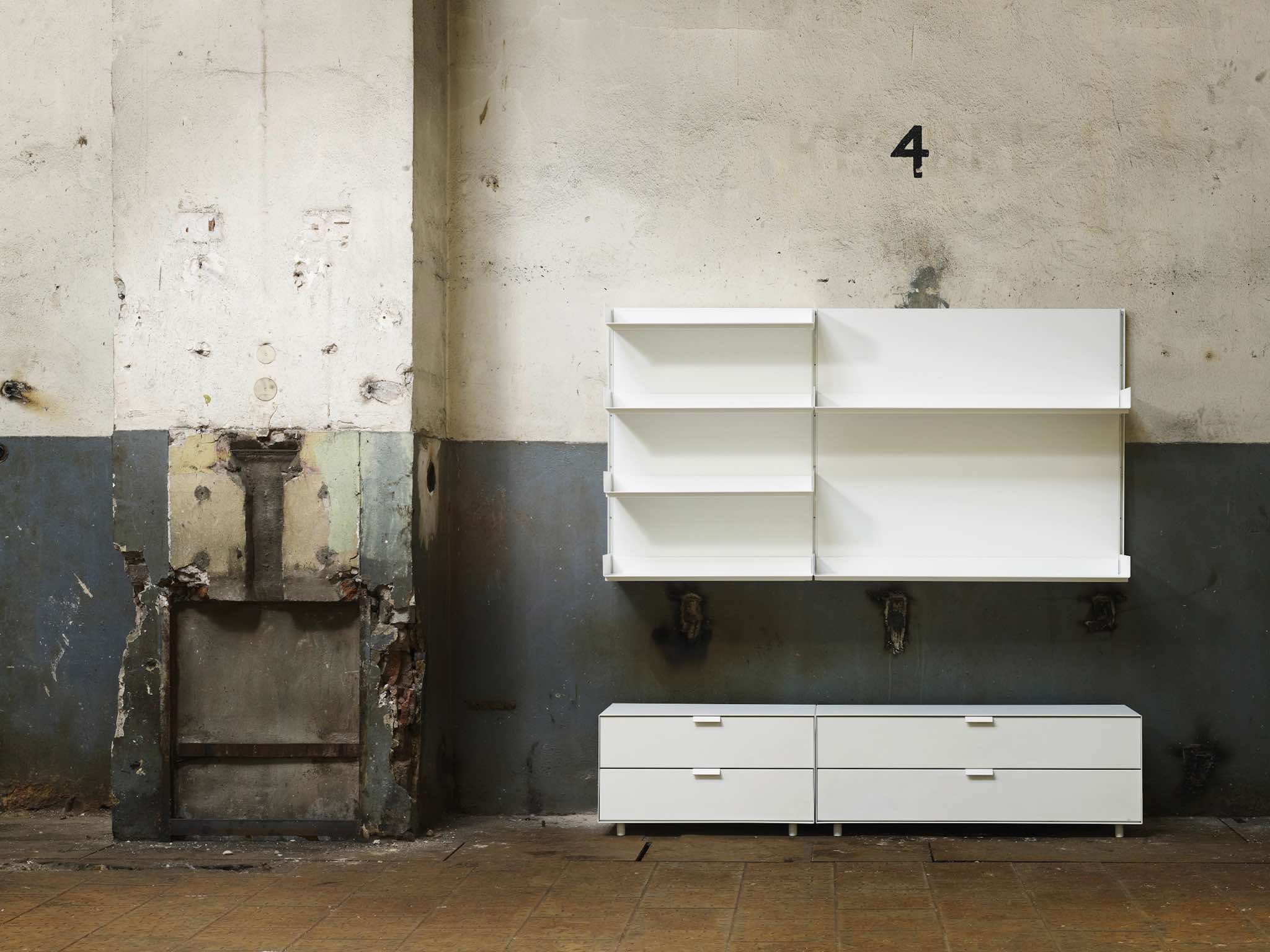 ARBEITEN Container von Wogg Container von Wogg Regal und Schreibtisch von Wogg Arbeiten bei Stua System M von S+
